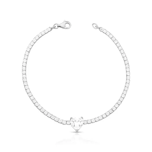 PULSEIRA RIVIERA COM CORAÇÃO EM CRISTAL PRATA RODINADA