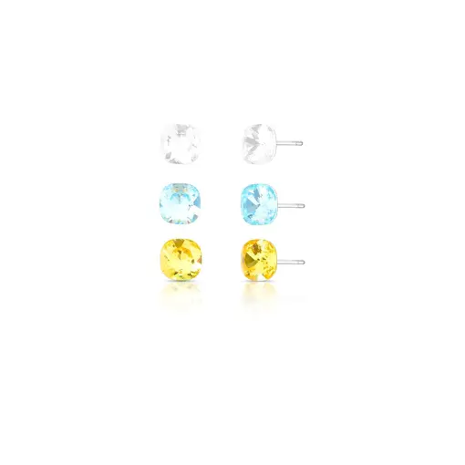 TRIO DE BRINCOS COM CRISTAIS QUADRADOS
